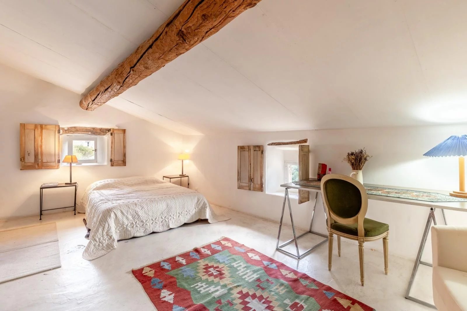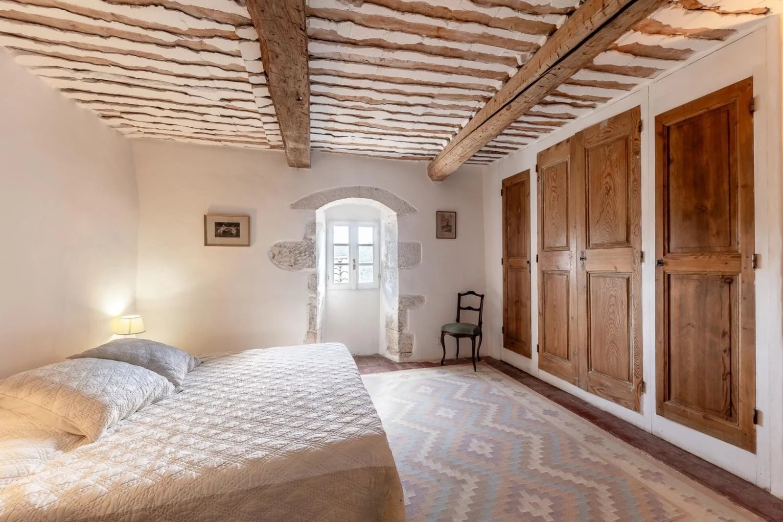 On the heights of the village, quiet stone house with architectural elements dating from the Middle Ages for a living area of approximately 225 m² with garden with view of 130 m² and interior courtyard. It includes a summer kitchen and a winter kitchen, a dining room with fireplace of 23 m², a living room with fireplace of 28 m², 5 bedrooms including one with fireplace, a bathroom, two shower rooms, laundry room.@ Beautiful stone staircase dating from the 14th century, old floor tiles, Provencal ceilings and numerous vaulted cellars. Absolute charm