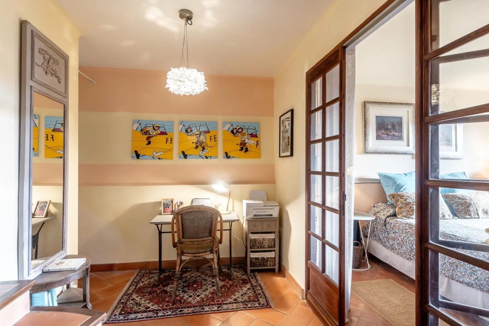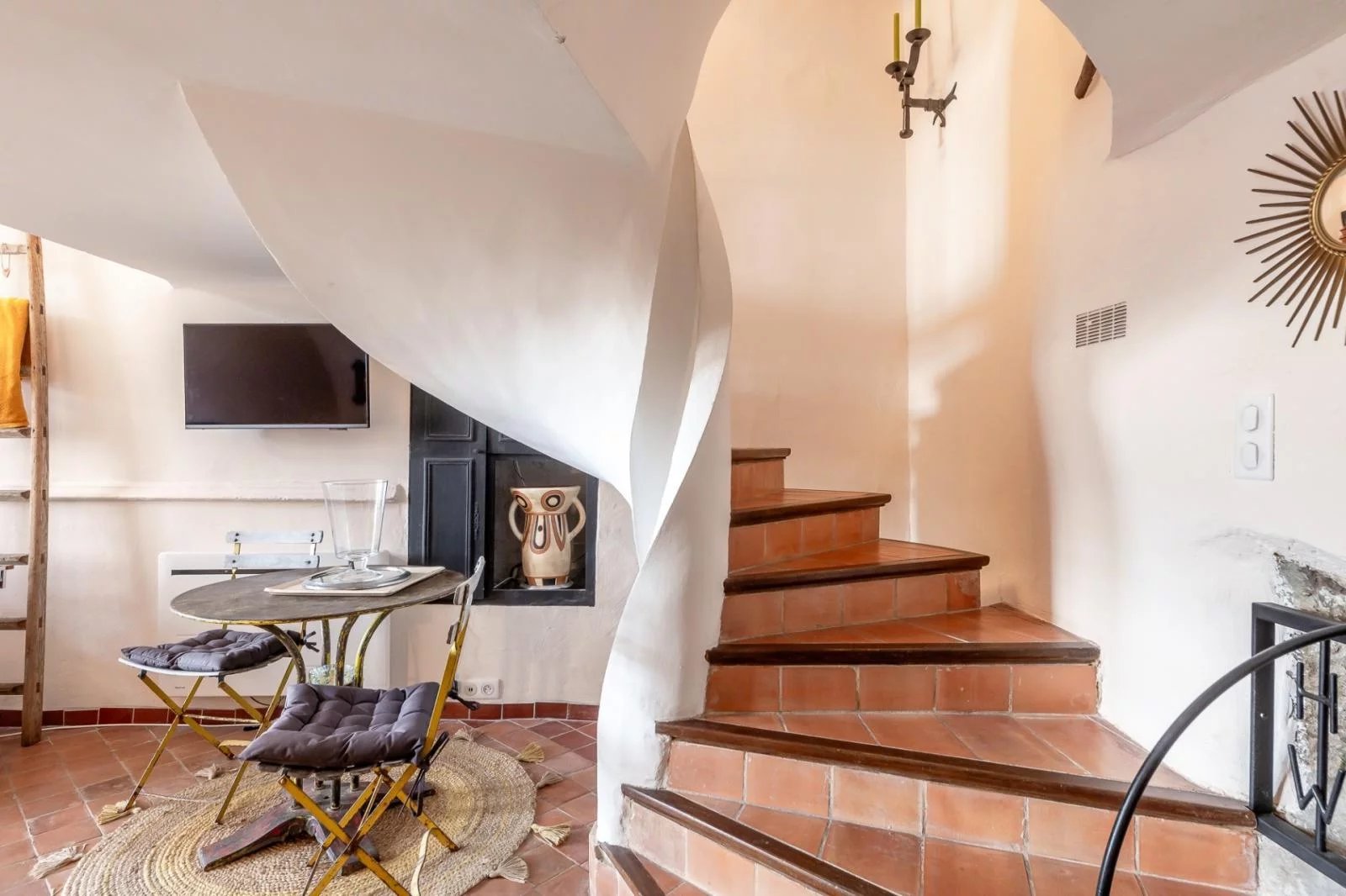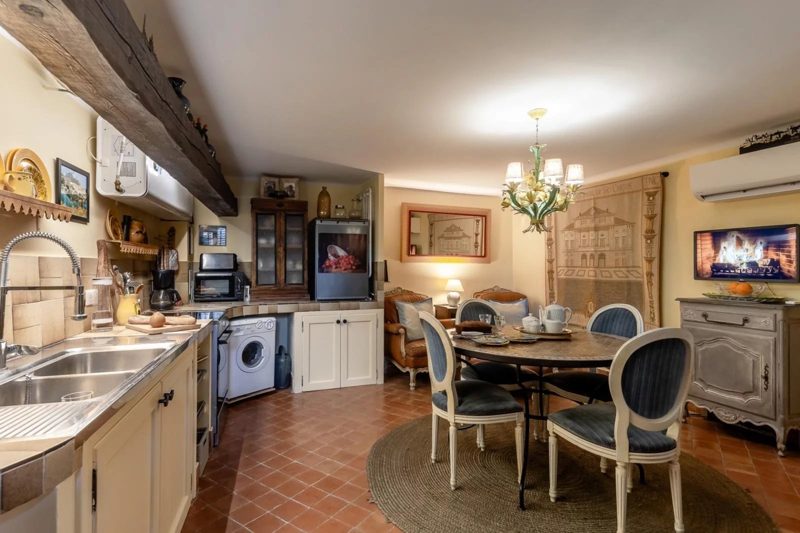Exclusively in the village of Bonnieux, tastefully renovated old stone house offering spacious living space of approx. 100 m². First floor: 24 m² living room with fireplace, stone cellar and 8 m² mezzanine. A beautiful staircase leads to the second floor, which offers a 6 m² office landing, a toilet, and a bright 16 m² bedroom with an unobstructed view of the cedar forest. On the intermediate level, a 24 m² fitted kitchen benefits from its own access. The second floor features a 17 m² bedroom, 3.5 m² bathroom and WC.
