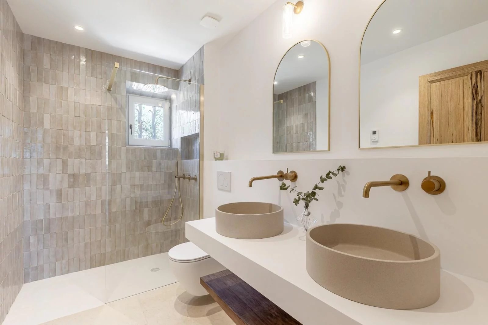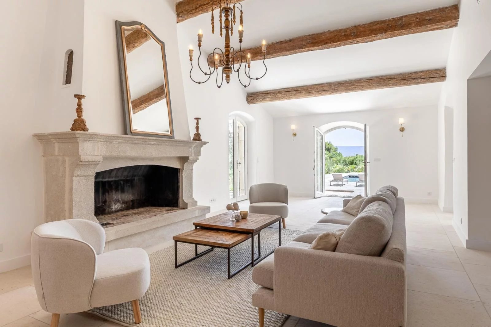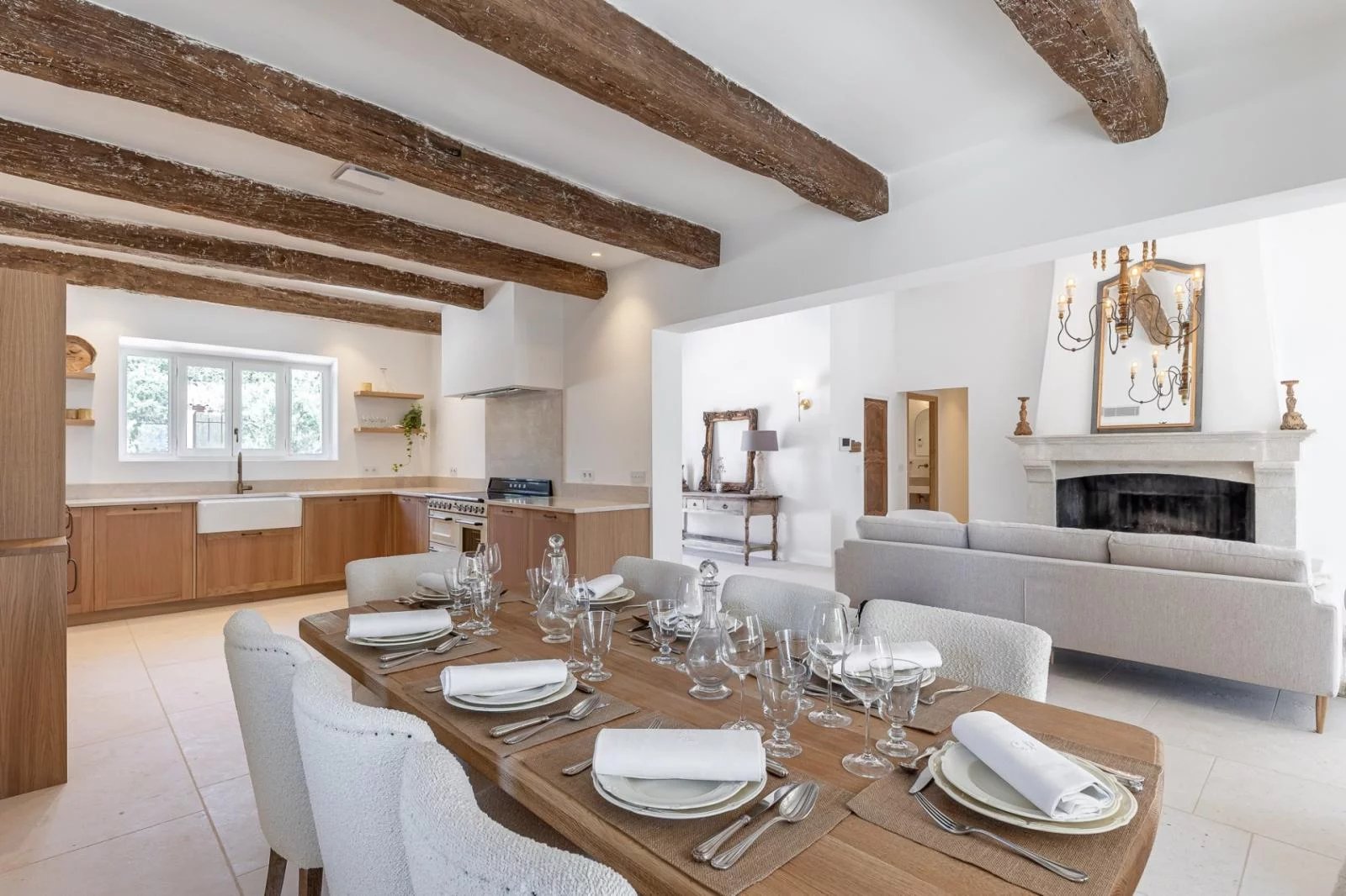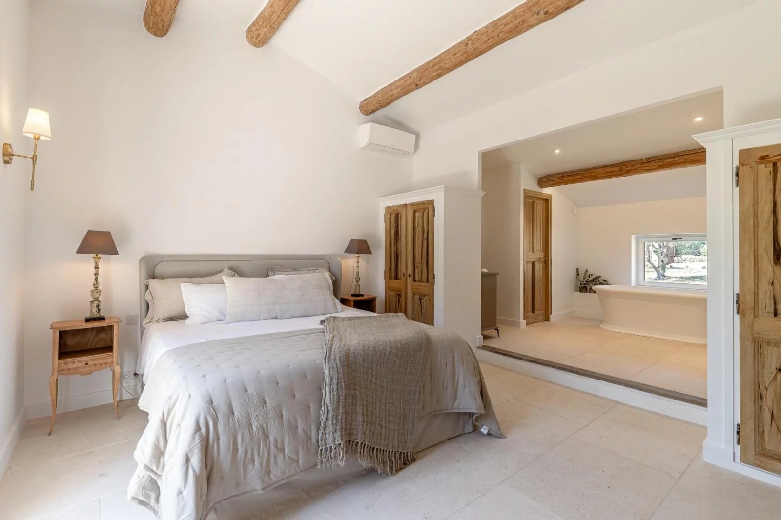 In a quiet location, superb property consisting of a fully renovated farmhouse using high-quality materials on a beautiful 1.4 hectare plot with views of the village of Gordes and the Luberon mountains. The single-storey farmhouse has 4 bedrooms and 4 bathrooms, a large open-plan kitchen with dining room, a living room with fireplace and large bay windows harmoniously connecting the living spaces to the garden. The land is enclosed by stone walls and decorated with an olive grove, large trees and a 5 x 10 m swimming pool surrounded by a wooden deck. The finishes are neat and high-end with heating and air conditioning in all rooms, the house is supplied with city water and has a borehole, the septic tank is new.