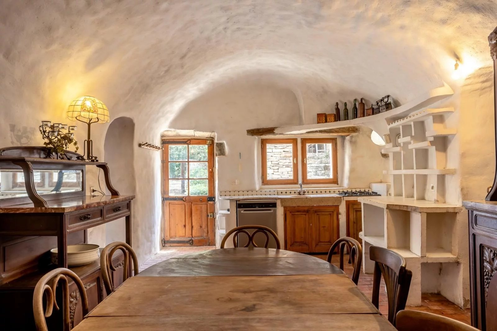 In a green setting, this authentic 18th century Provencal farmhouse punctuated by the charm of 3 interior courtyards offers approximately 325m2 of living space on two levels. This unique property worthy of ancestral architecture includes 2 kitchens opening onto the courtyard including a kitchen-dining room, 2 living rooms with vaulted ceiling and their fireplace, 8 bedrooms and 3 bathrooms. The property extends over 4.2 hectares of wooded land with its 15x6m swimming pool. Several outbuildings complete the set, an awning with fireplace, a bread oven, a bedroom, a suspended terrace and a separate bathroom. An exceptional potential for restoration with multiple possibilities.