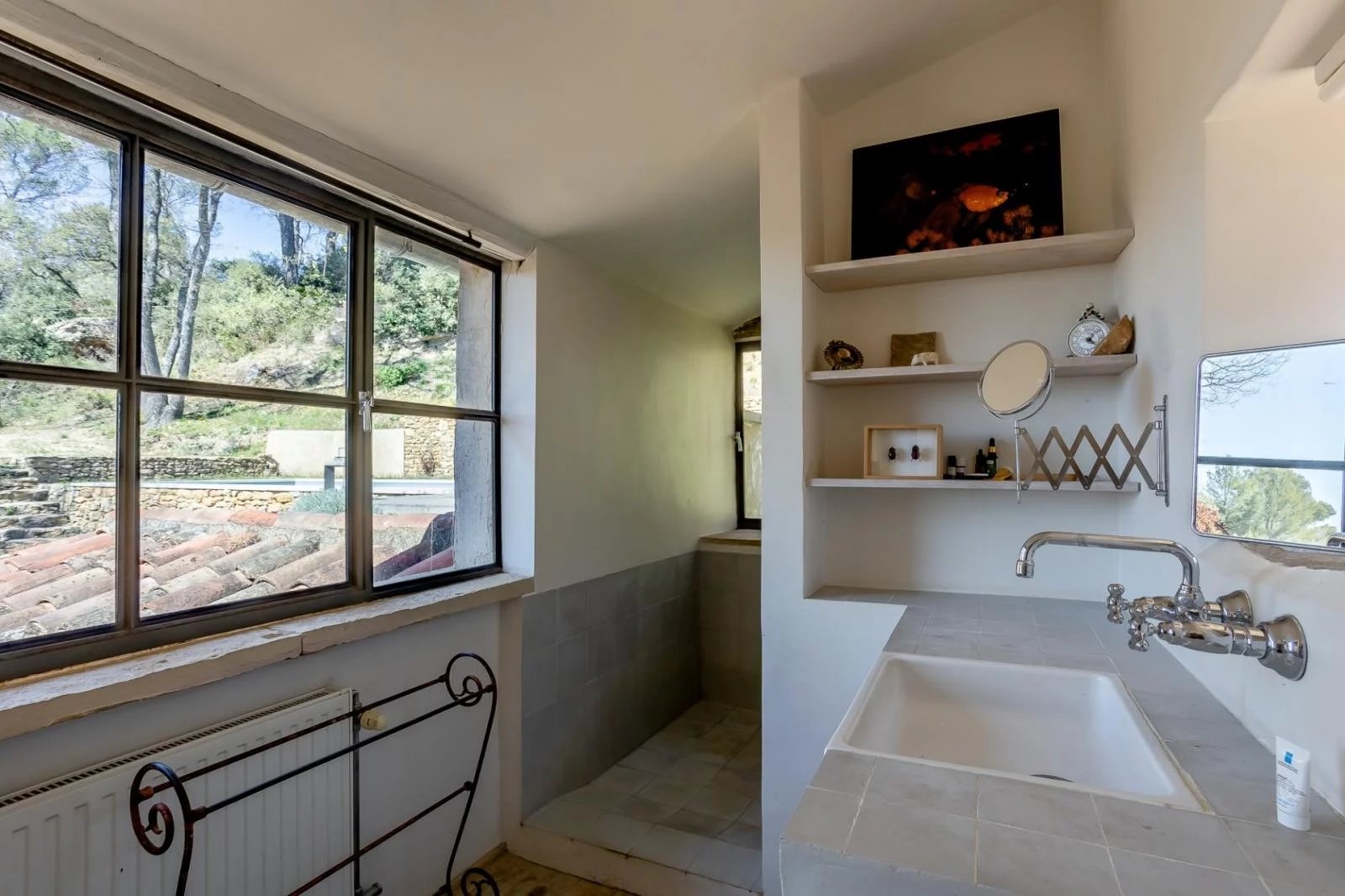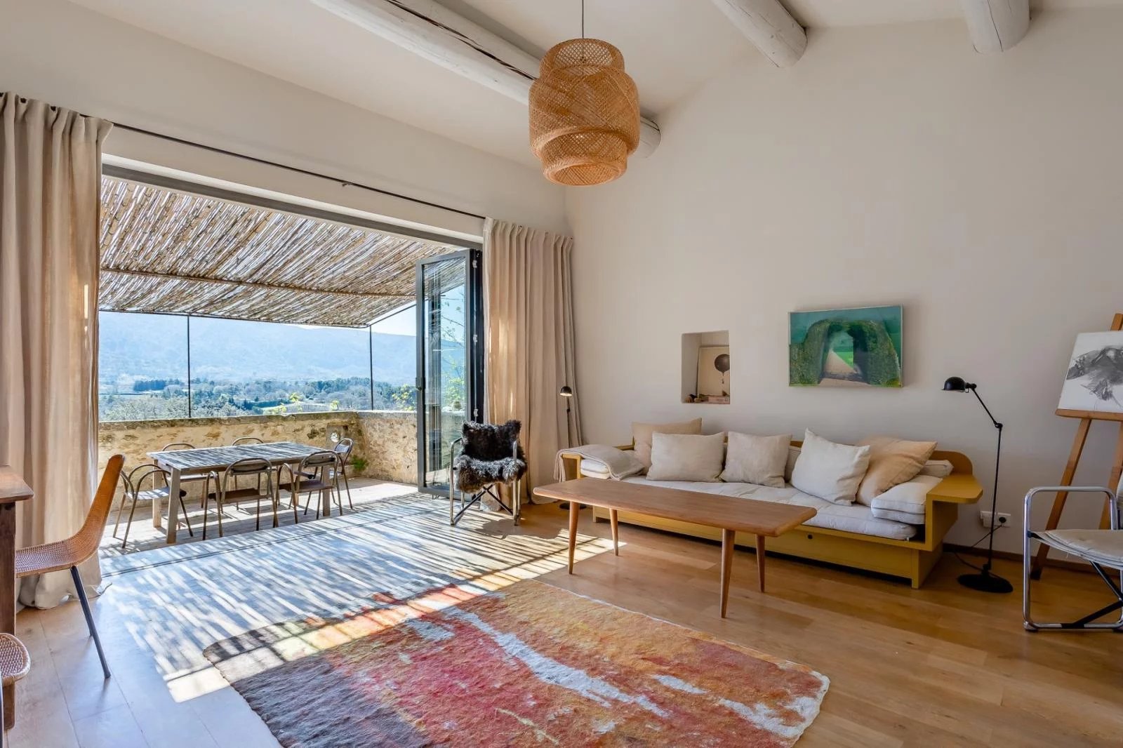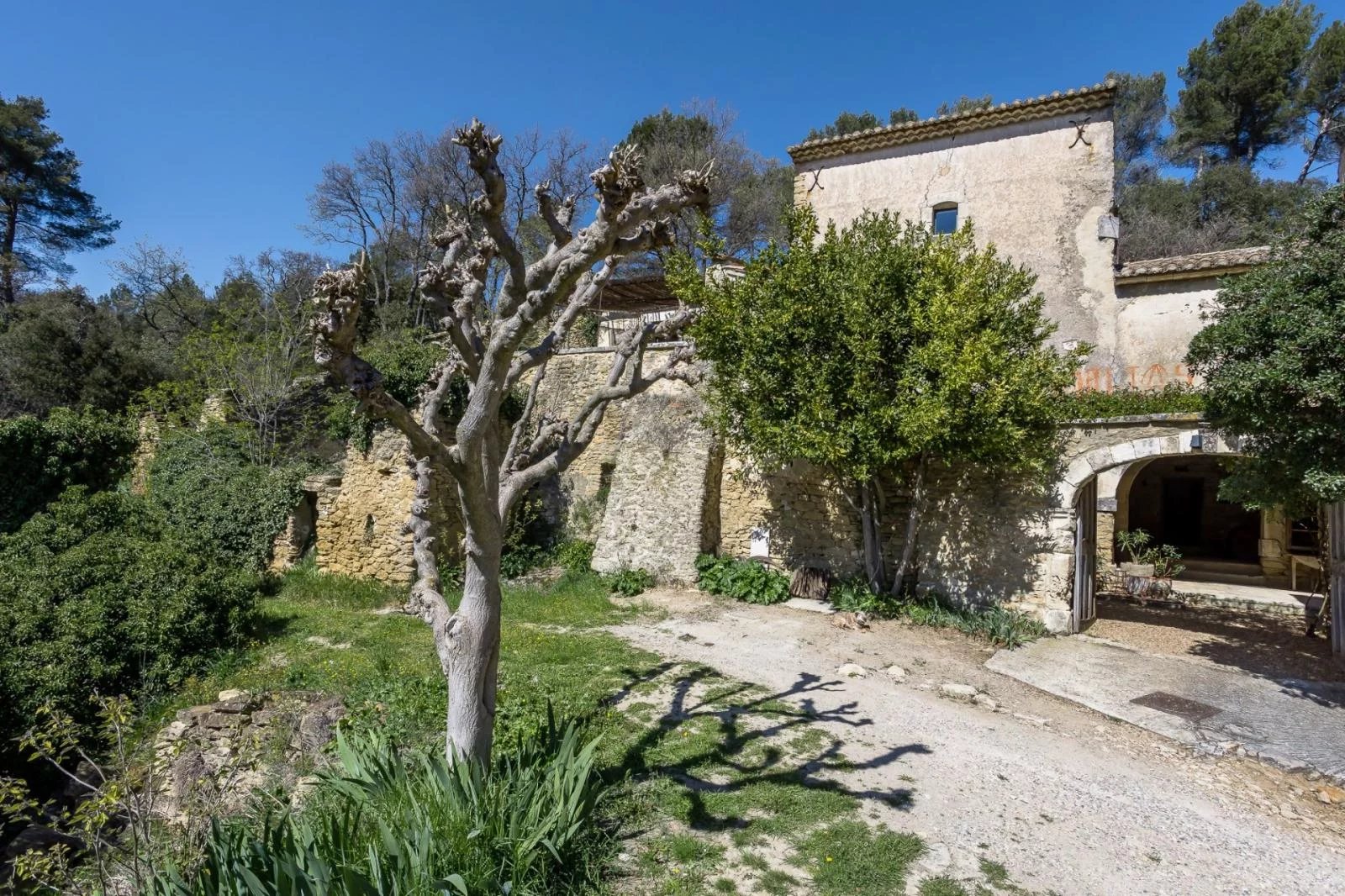 In an exceptional environment, this semi-detached 18th century farmhouse has been completely renovated and offers a living area of approximately 186 m² on a wooded plot of 5217 m² with a dominant and breathtaking view of the Luberon mountain and the village of Oppède le vieux. The farmhouse is built around a beautiful interior courtyard full of charm and includes two living rooms, one of which opens onto a terrace with a view, a kitchen, a large master bedroom of 26 m² with adjoining shower room, a bedroom 15 m² with a bathroom of 12 m², a bedroom with adjoining shower room of 15 m² opening onto a terrace, a separate bedroom with adjoining shower room of 14 m² and a small extra bedroom of 7 m². @ The farmhouse has benefited from a renovation in the purest Provencal style while retaining large volumes and openings to let in as much light as possible. @ The 7.5 x 3.5 swimming pool was built on the heights of the land and also enjoys a very nice view. Oil-fired central heating and reversible air conditioning in bedrooms and living room, 2 wood-burning stoves in living room and kitchen.