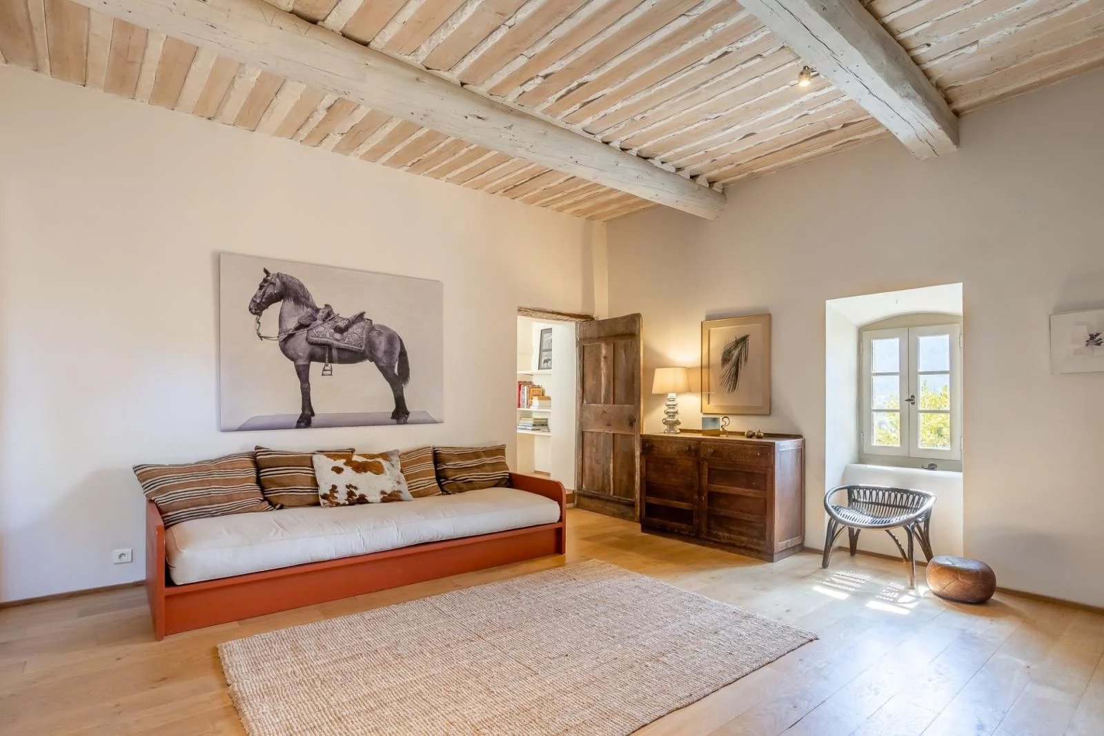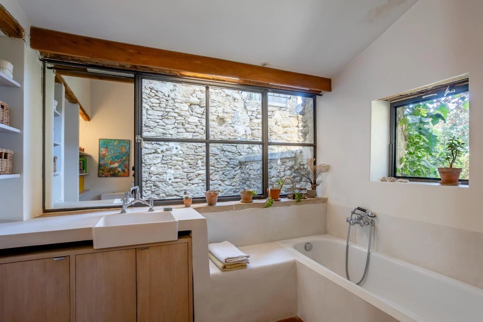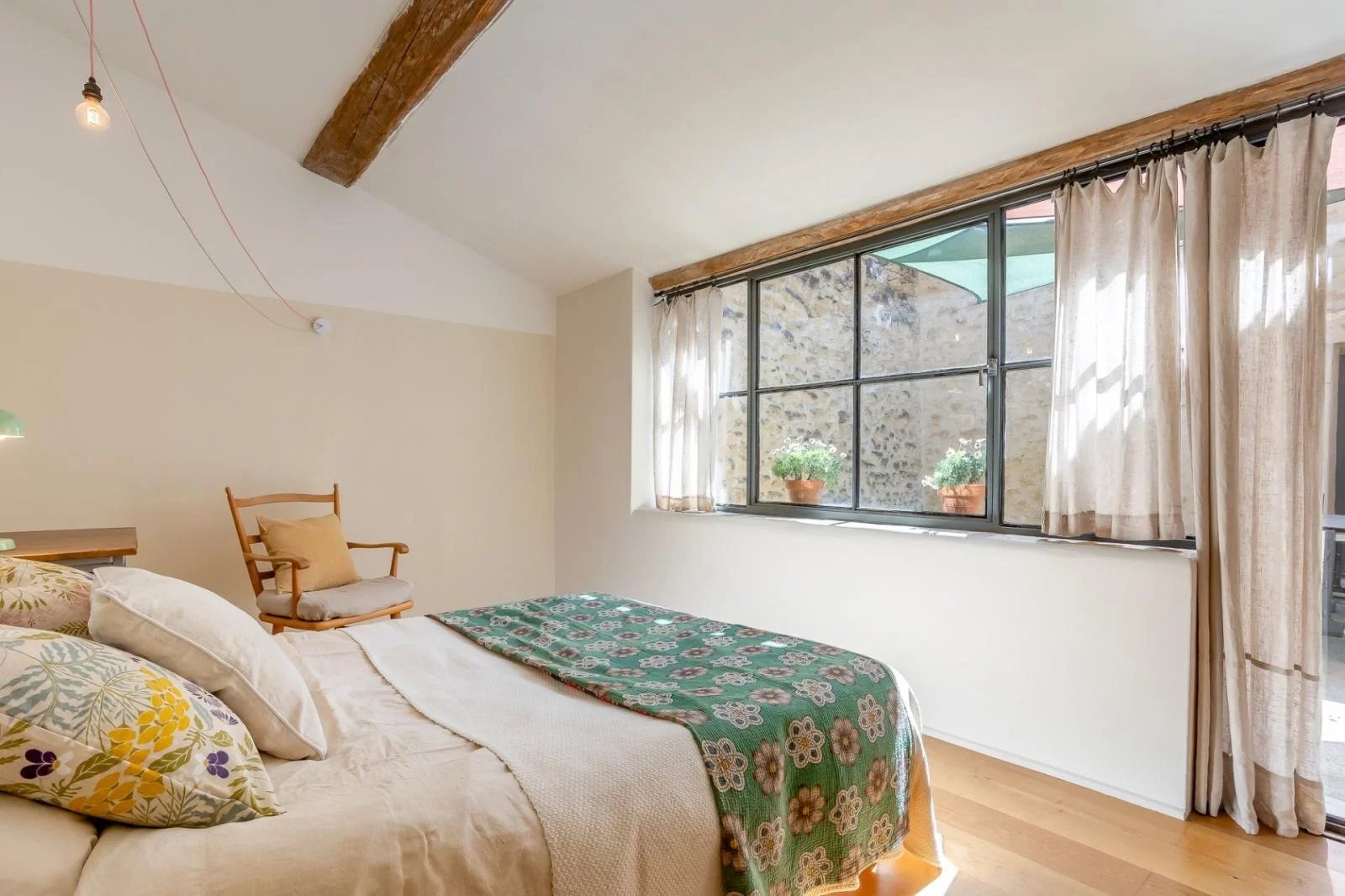 In an exceptional environment, this semi-detached 18th century farmhouse has been completely renovated and offers a living area of approximately 186 m² on a wooded plot of 5217 m² with a dominant and breathtaking view of the Luberon mountain and the village of Oppède le vieux. The farmhouse is built around a beautiful interior courtyard full of charm and includes two living rooms, one of which opens onto a terrace with a view, a kitchen, a large master bedroom of 26 m² with adjoining shower room, a bedroom 15 m² with a bathroom of 12 m², a bedroom with adjoining shower room of 15 m² opening onto a terrace, a separate bedroom with adjoining shower room of 14 m² and a small extra bedroom of 7 m². @ The farmhouse has benefited from a renovation in the purest Provencal style while retaining large volumes and openings to let in as much light as possible. @ The 7.5 x 3.5 swimming pool was built on the heights of the land and also enjoys a very nice view. Oil-fired central heating and reversible air conditioning in bedrooms and living room, 2 wood-burning stoves in living room and kitchen.