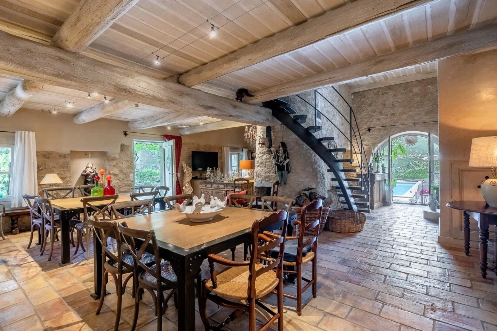 Quiet, completely renovated farmhouse with a living area of 296 m² on land of 4950 m² with swimming pool and view. The main house includes a large living room with fireplace and dining room of 73 m², a professional kitchen of 22 m², 3 bedrooms with their own shower room or bathroom, a dormitory, the possibility of a additional bedroom of 37 m², 2 offices, a beautiful summer kitchen of 30 m² overlooking the swimming pool area with fireplace, barbecue and rotisserie. Treehouse with an additional bedroom. Technical rooms: laundry boiler room, garage with wine cellar. Swimming pool 6 x 12 m Underfloor heating, air conditioning in all rooms